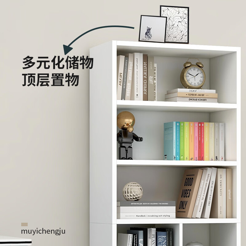 木以成居书架落地 1.58m简约书柜客厅卧室书房阳台简易置物架六层暖白色价格:159.00元!