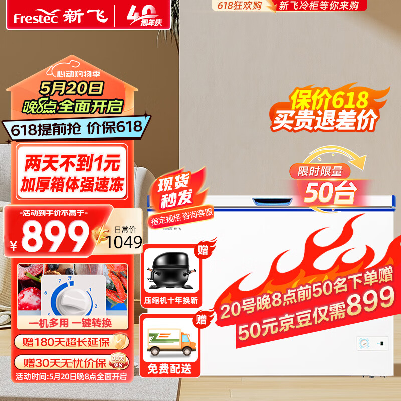 新飞(Frestec) 300升 商用单温冰柜 顶开门 单箱变温冰箱 冷藏冷冻冷柜 BC/BD-300KHAT价格:949.00元!