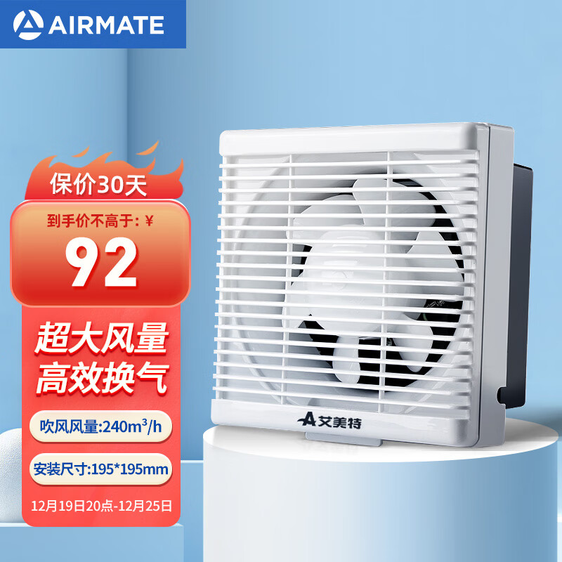 艾美特(Airmate )XF1560H 换气扇窗式排气扇6寸厨房抽风机排风扇卫生间墙用抽风机价格:92.00元!