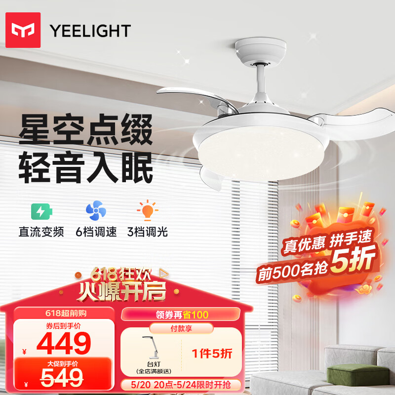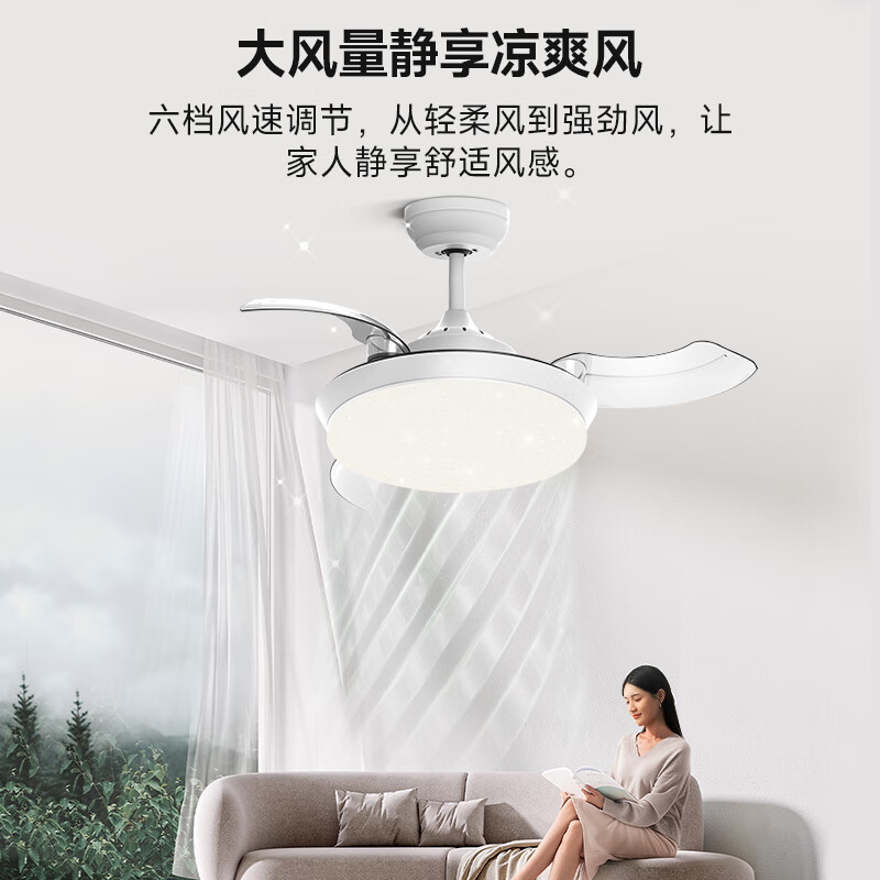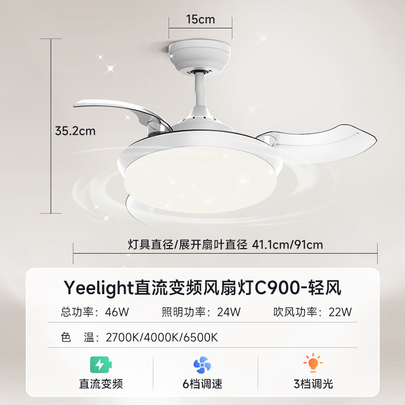 Yeelight易来风扇灯直流变频LED吊扇灯隐形扇叶餐厅卧室客厅-C900轻风价格:1098.00元!
