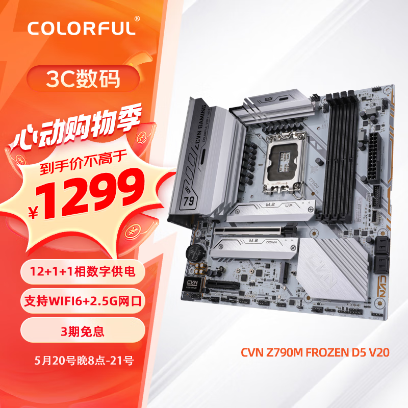 七彩虹(Colorful)CVN Z790M FROZEN D5 V20 战列舰 DDR5主板 支持13700K/13600K(Intel Z790/LGA 1700)价格:1299.00元!