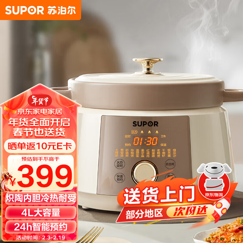 苏泊尔(SUPOR)电炖锅 电炖盅 煲汤锅炖汤锅 燕窝炖盅煮粥锅 煮粥熬粥婴儿辅食炽陶电炖锅 4L DG40YC867价格:409.00元!