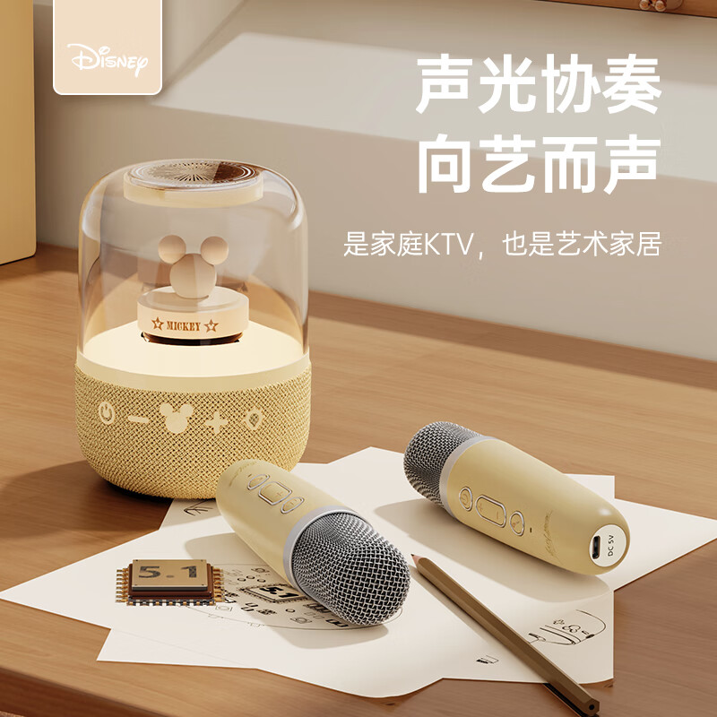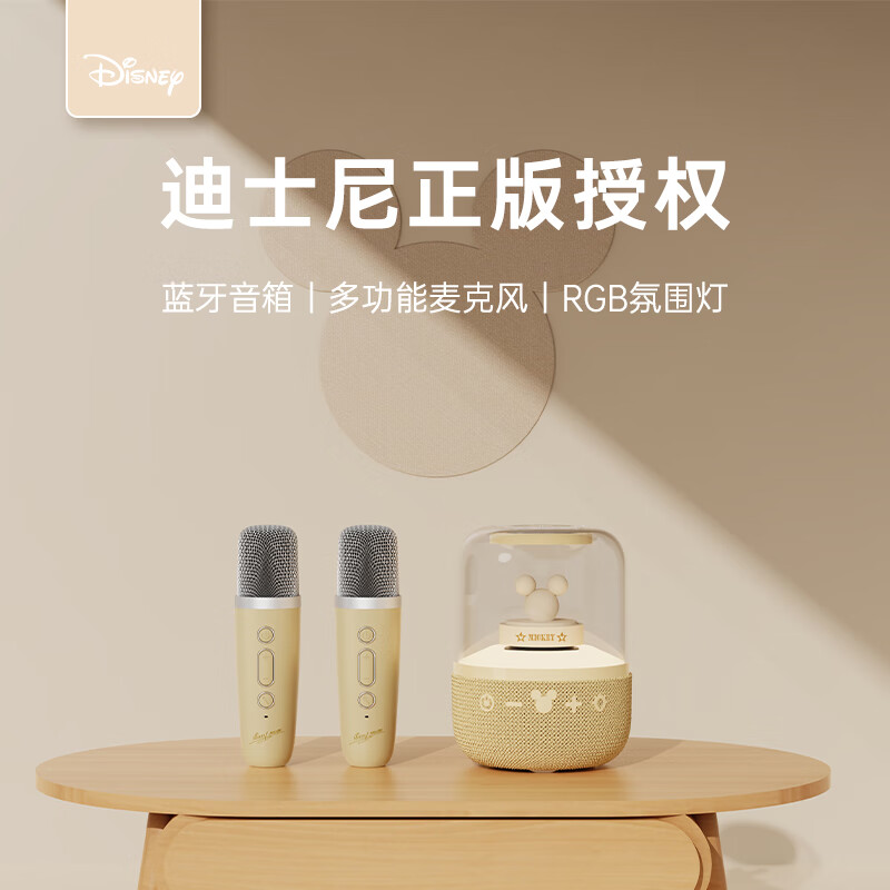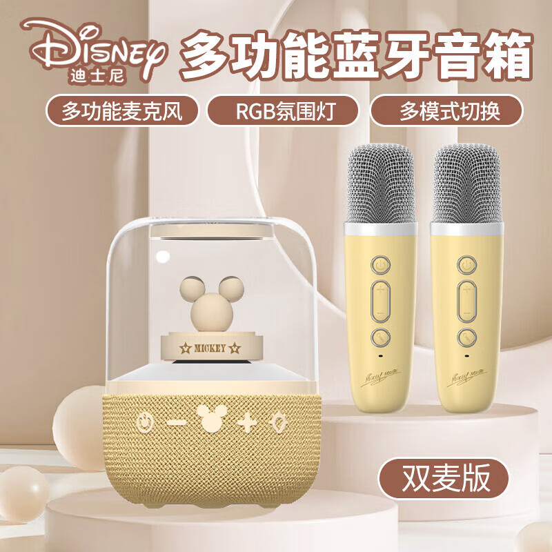 迪士尼(Disney)无线蓝牙音响便携式 户外家用 重低音炫彩发光 迷你音箱带话筒K歌音箱家用 S20双麦版卡其色价格:199.00元!