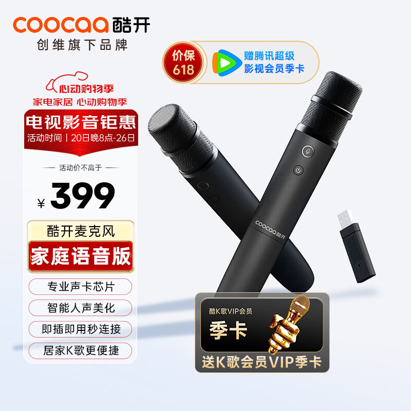 酷开 创维出品 酷K-QD创维电视专用麦克风家庭KTV 卡拉OK 降噪话筒唱歌会议 无线话筒K歌双支麦克风价格:399.00元!
