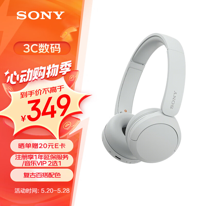 索尼(SONY)WH-CH520 舒适高效无线头戴式蓝牙耳机 舒适佩戴 音乐耳机 白色价格:349.00元!