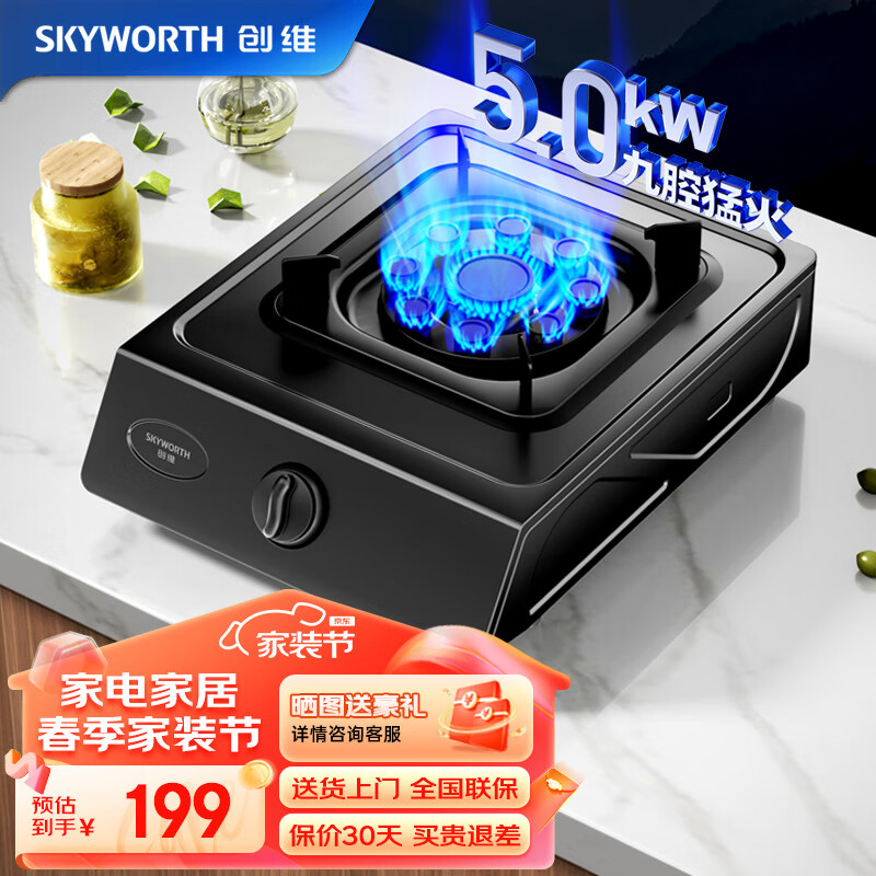 创维(Skyworth)燃气灶液化气煤气灶单灶家用单眼燃气灶单炉灶台5.0KW猛火台式九腔猛火炉具Z102T(液化气)价格:199.00元!