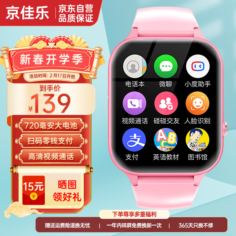 京佳乐【大电池长待机】儿童电话手表可插5G/4G卡通视频通话中小学生智能电话手表价格:139.00元!