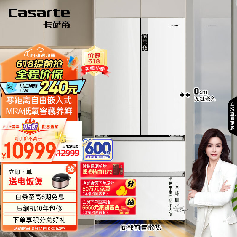 卡萨帝(Casarte)550升纯白零嵌法式多门白色家用大容量揽光502姐妹款超薄嵌入电冰箱变频BCD-550WGCFDM4WKU1价格:13299.00元!