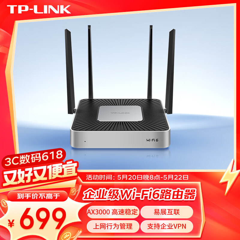 TP-link WiFi6企业级无线VPN路由器 AX3000 千兆网口 wifi穿墙/可变端口/AC管理 TL-XVR3000L易展版价格:699.00元!