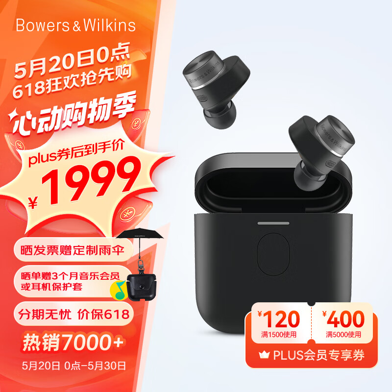 宝华韦健(B&W) Pi7二代 智能主动降噪真无线蓝牙耳机Bowers&Wilkins Pi7s2 hifi音乐运动入耳式 苍墨黑价格:2099.00元!