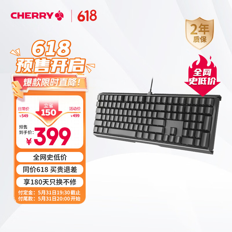 CHERRY樱桃 MX3.0S机械键盘 游戏键盘 电竞键盘 办公电脑键盘 侧刻键帽 合金外壳 樱桃无钢结构 黑色红轴价格:448.90元!