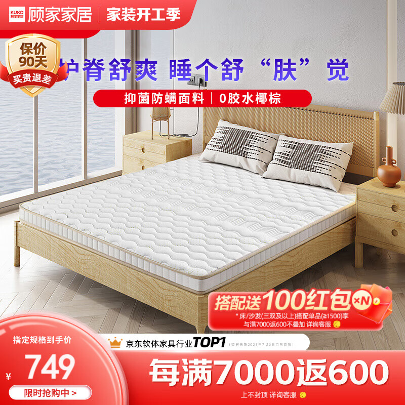 顾家家居 椰棕床垫硬 加厚透气老人小孩床垫M0077 1.2X1.9米价格:749.00元!