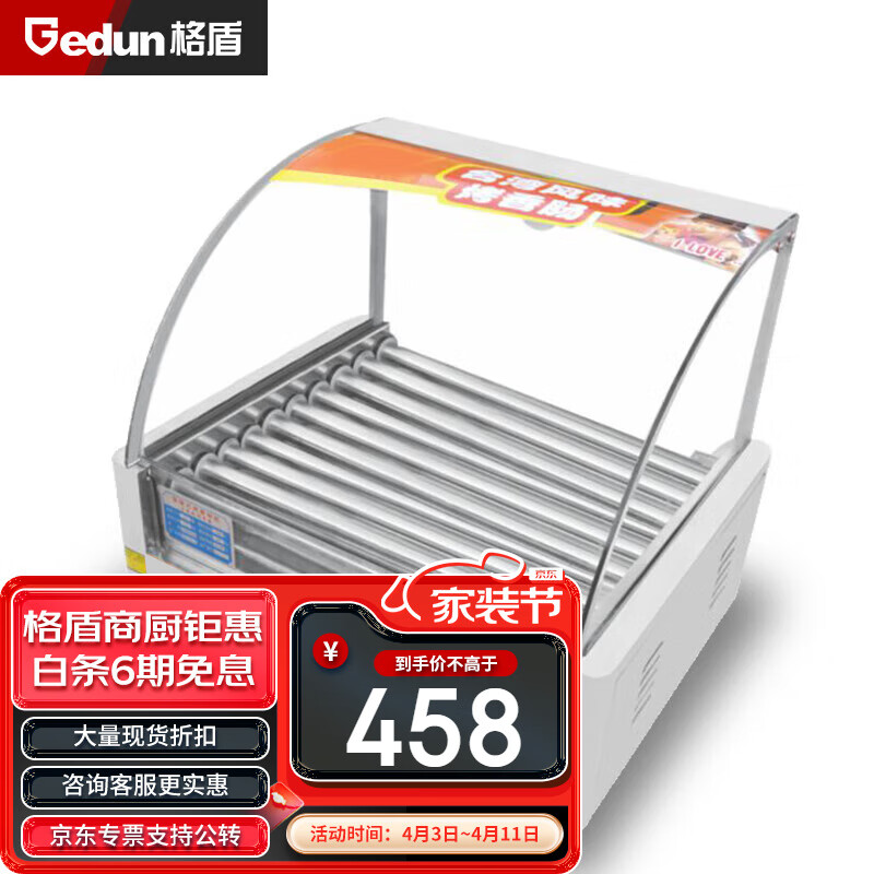 格盾(gedun)烤肠机商用热狗机小吃店全自动台式烤火腿肠机 10管双控 GD-KCJ-10价格:488.00元!