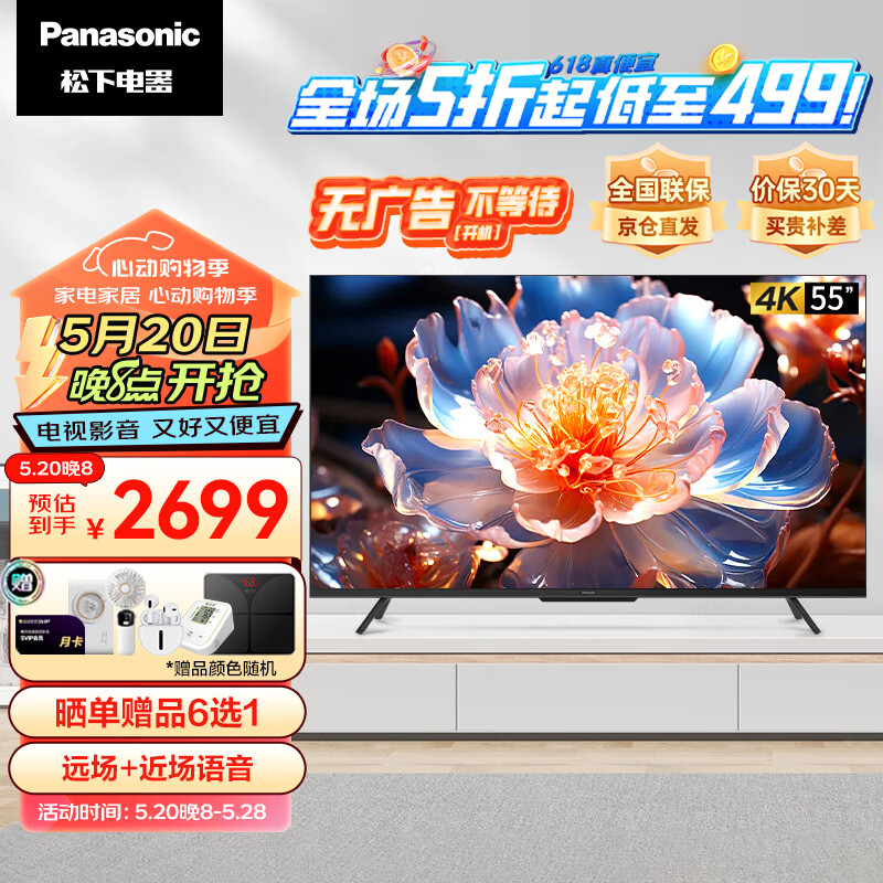 松下(Panasonic)电视LX580 55英寸 丽可彩4K 屏MEMC AI语音 开机无广告智能电视机 TH-55LX580C价格:2699.00元!