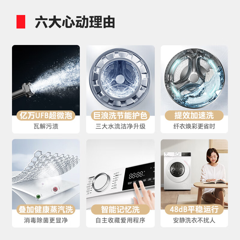 特色功能:儿童锁,进水阀漏水保护,排水阀漏水保护,筒自洁,脱水功能,预约功能,智能断电记忆,中途添衣