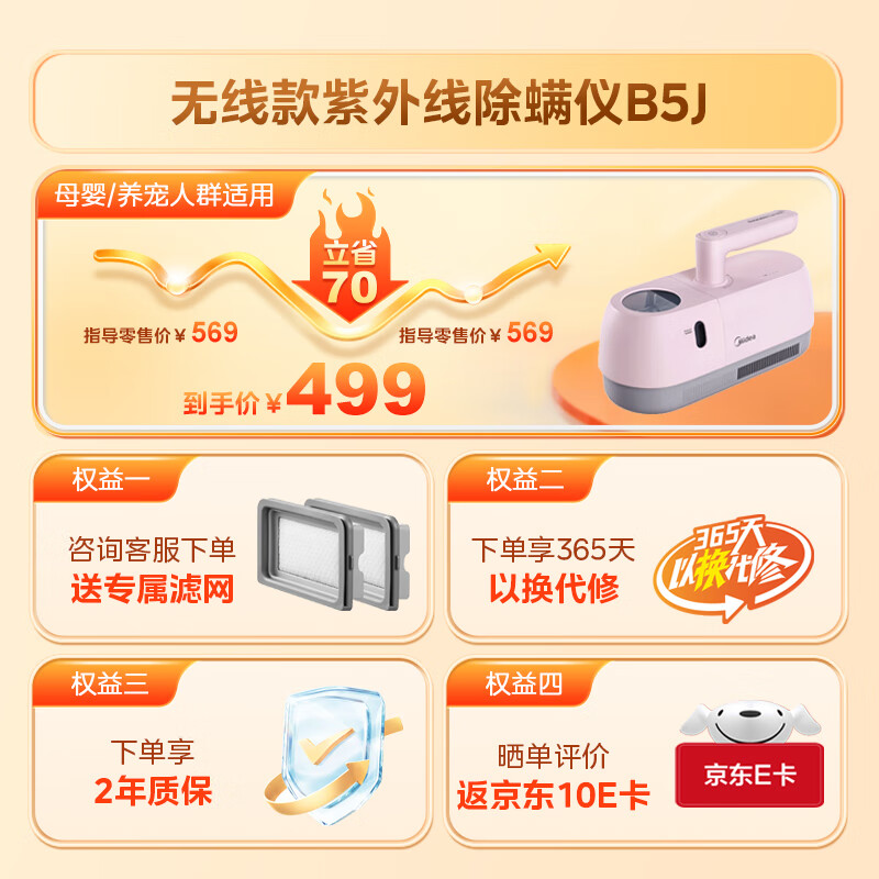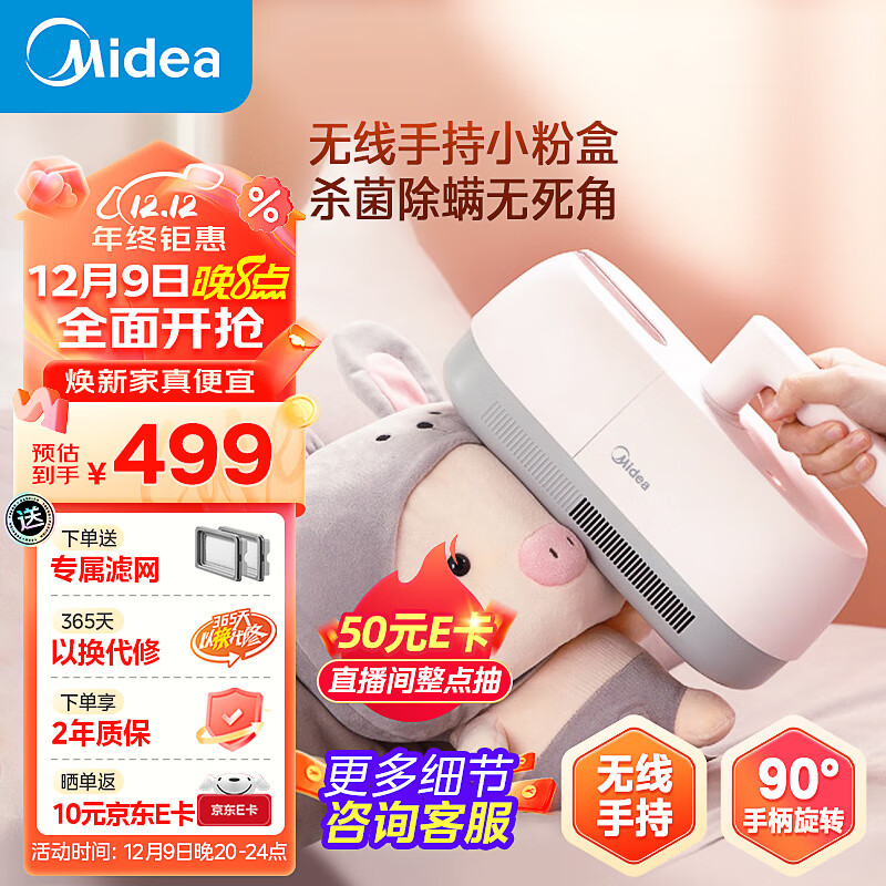 美的(Midea)高颜值无线除螨仪B5J 家用除螨仪 UV紫外线杀菌床上除螨虫 1.3kg轻巧便携 小粉盒价格:499.00元!