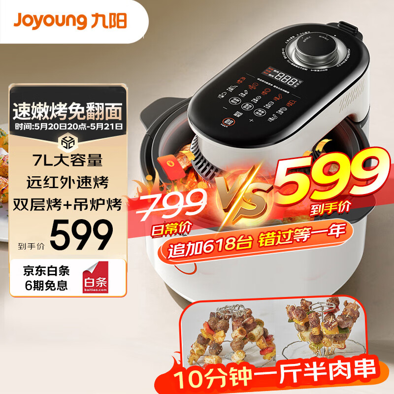 九阳(Joyoung)速嫩烤空气炸锅 不用翻面 可视大容量7L双层烤+吊炉烤 智能无油嫩炸 烤箱薯条机KL70-V1Pro价格:599.00元!