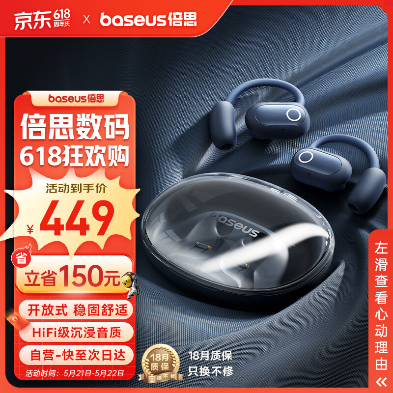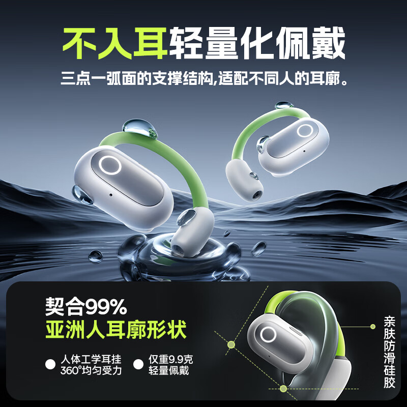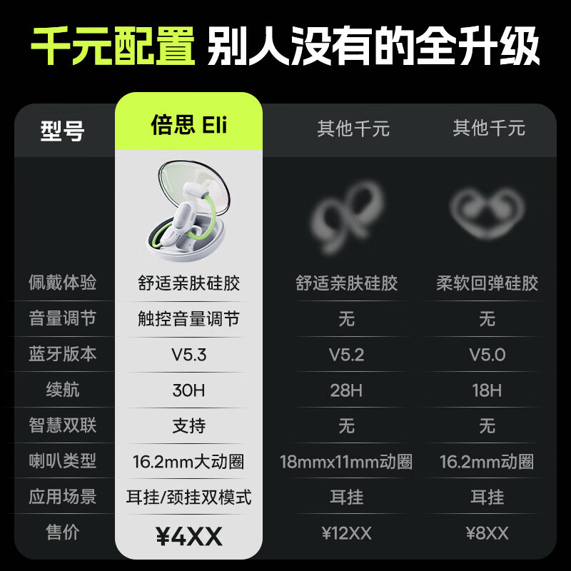 倍思 eli 开放式蓝牙耳机骨传导概念挂耳式 不入耳 运动跑步通话降噪高端无线耳机适用华为小米 黑价格:599.00元!