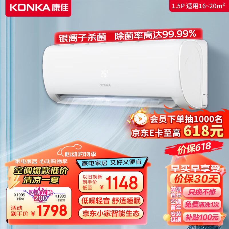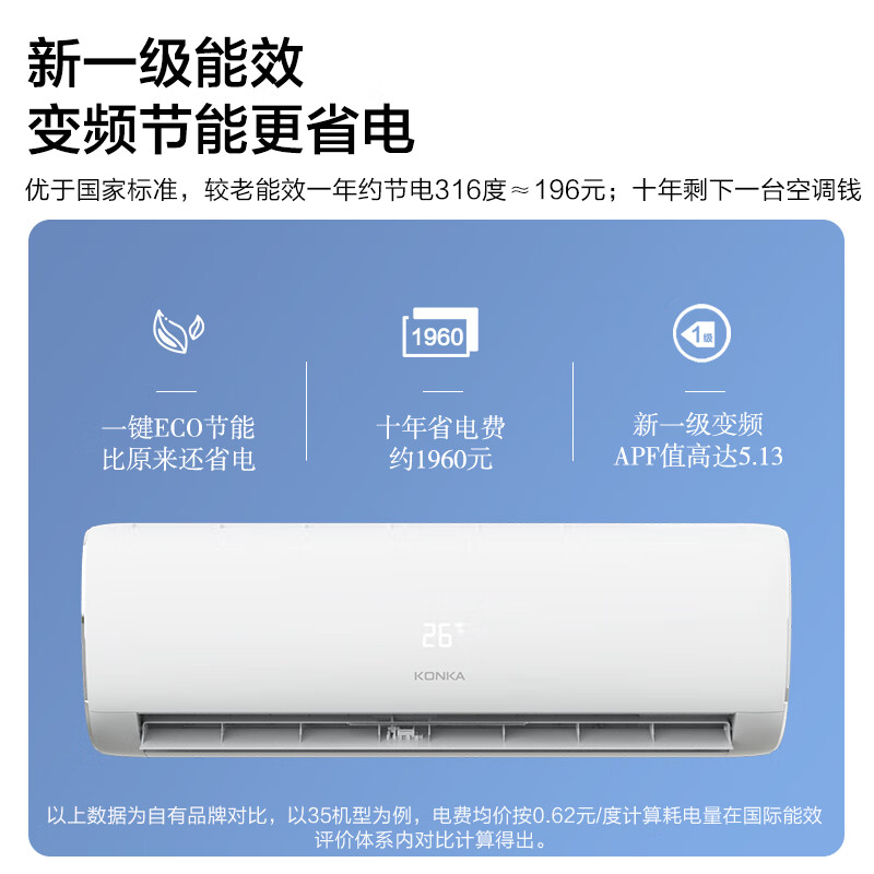 康佳(KONKA)1.5匹 新一级能效 快速冷暖 精准控温 变频空调挂机 KFR-35GW/T1 以旧换新 京东小家智能生态价格:1798.00元!