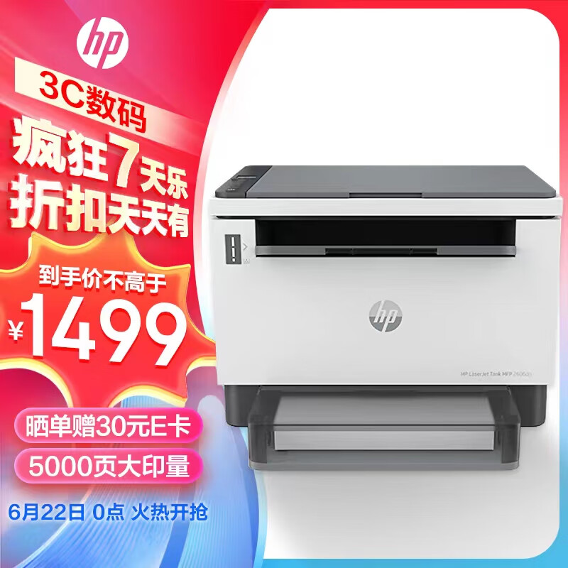 惠普(HP)2606dw 自动双面无线激光多功能打印机 打印复印扫描 商用办公单页成本3分钱价格:1499.00元!
