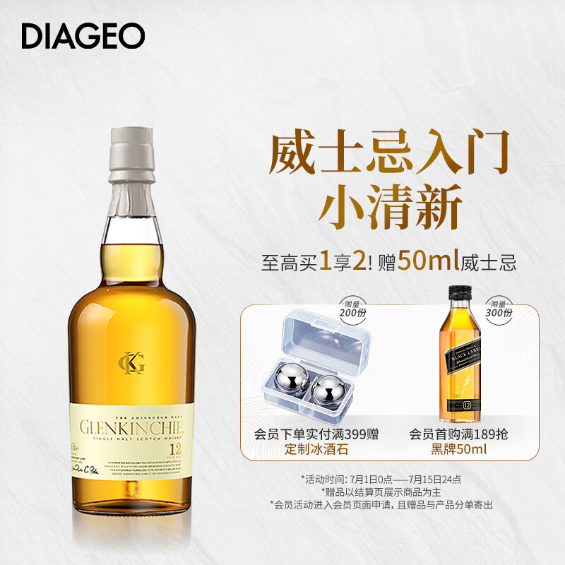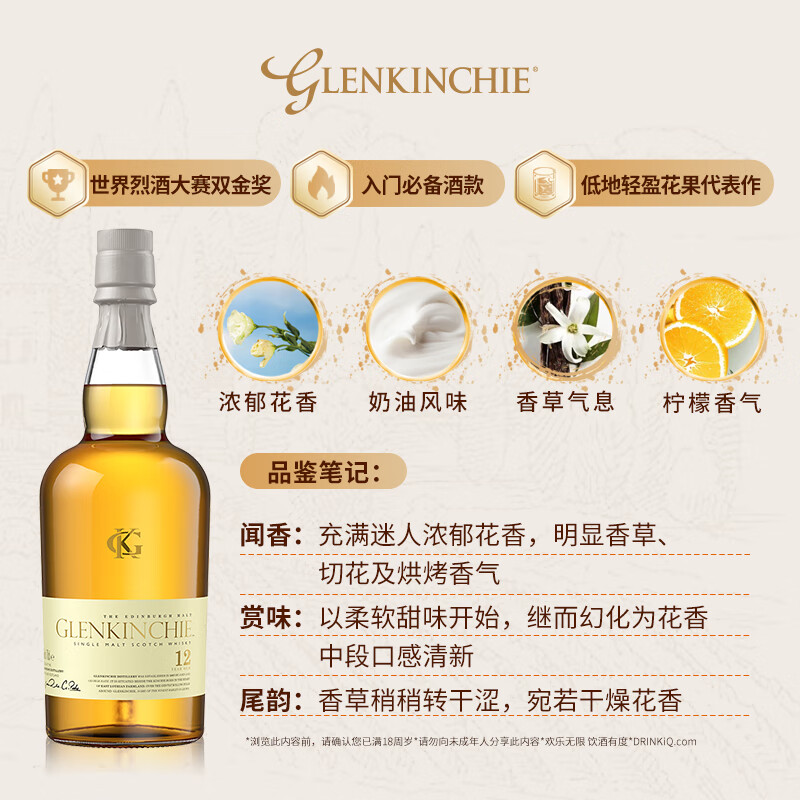 格兰昆奇(GLENKINCHIE) 12年 苏格兰 低地产区 单一麦芽 威士忌 洋酒 700ml价格:224.00元!