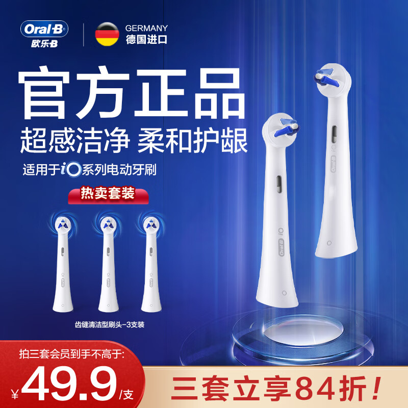 欧乐B电动牙刷头 iO系列正畸刷头 齿缝清洁型3支装 TG-3 适配iO云感刷系列磁波刷头圆头 德国进口 软毛价格:179.00元!