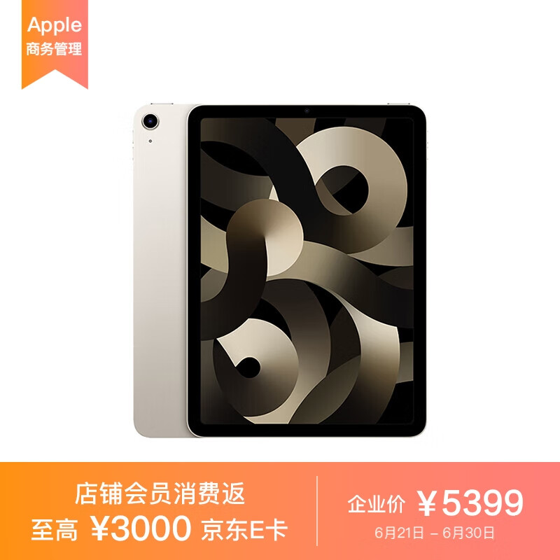 Apple iPad Air 10.9英寸平板电脑 2022年款(256G WLAN版/M1芯片Liquid视网膜屏) 星光色 MM9P3CH/A*企业专享价格:5999.00元!