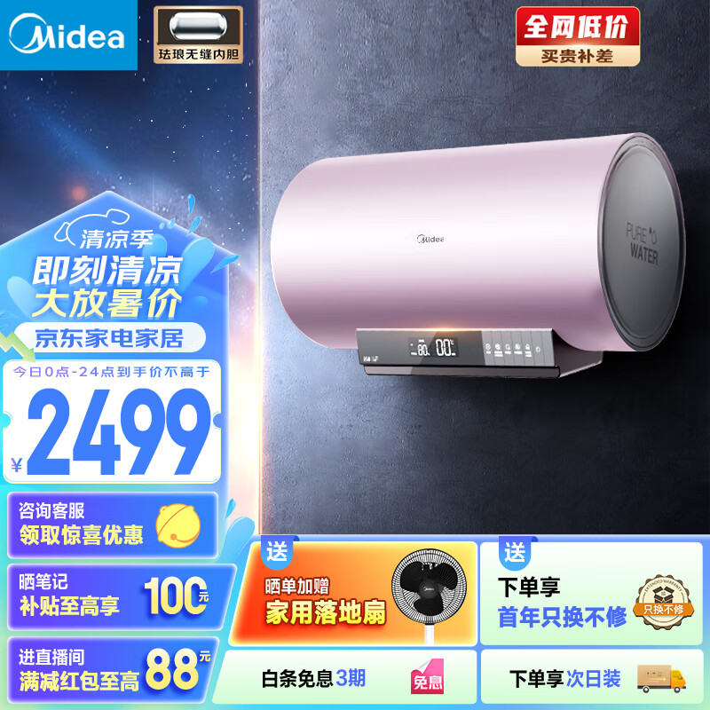 美的(Midea)TECH活水系列电热水器80升免换镁棒 3300W变频速热净肤洗智能八重净滤F8033-HQ3(HE)凝霜芋价格:2699.00元!