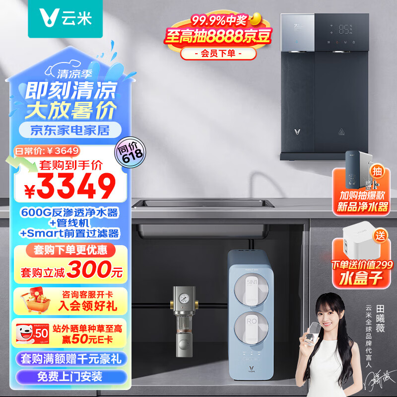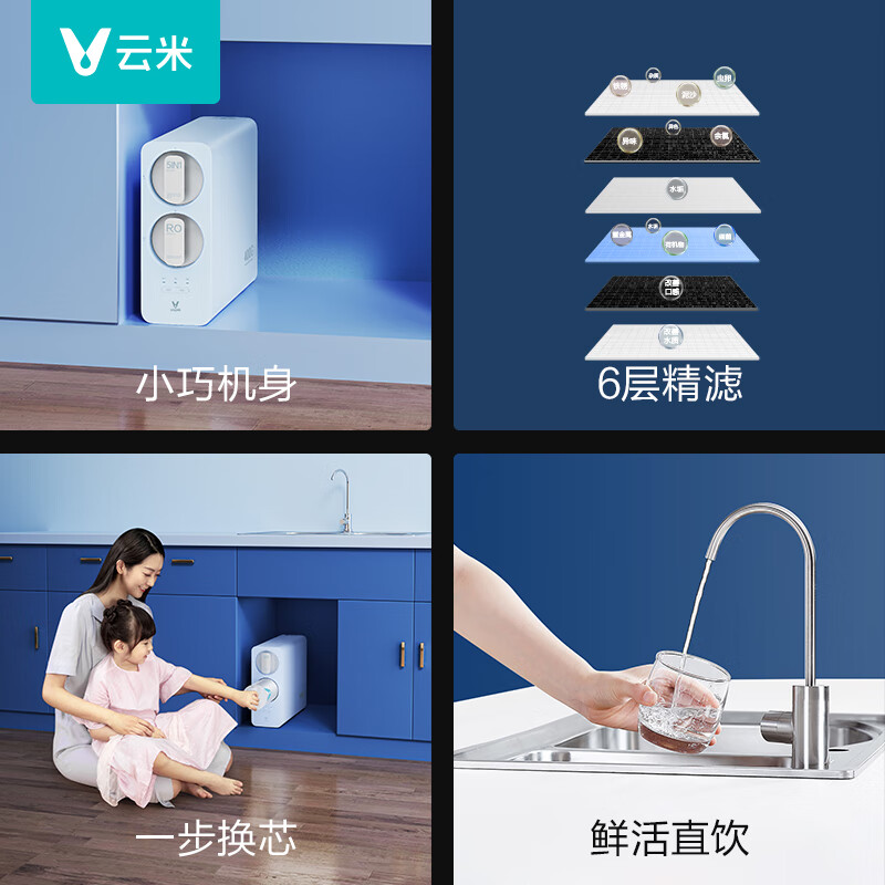 云米(VIOMI)小蓝调600G全屋净水套装净水器+冷热管线机Master 3+前置过滤器VF4-A三件套家用加热净水器净水机价格:3649.00元!