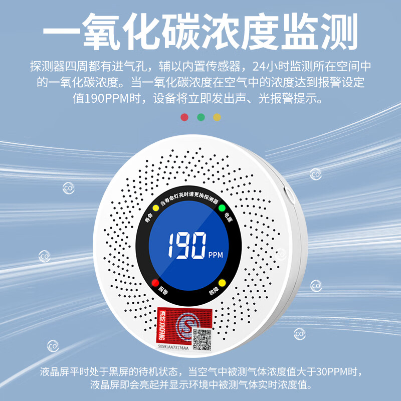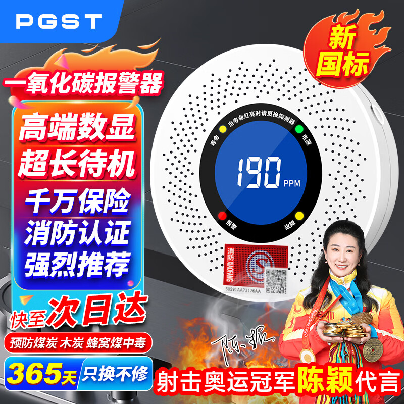 PGST 一氧化碳报警器CO探测器家用防中毒厨房烧煤泄漏探测消防报警器PA-007价格:129.00元!
