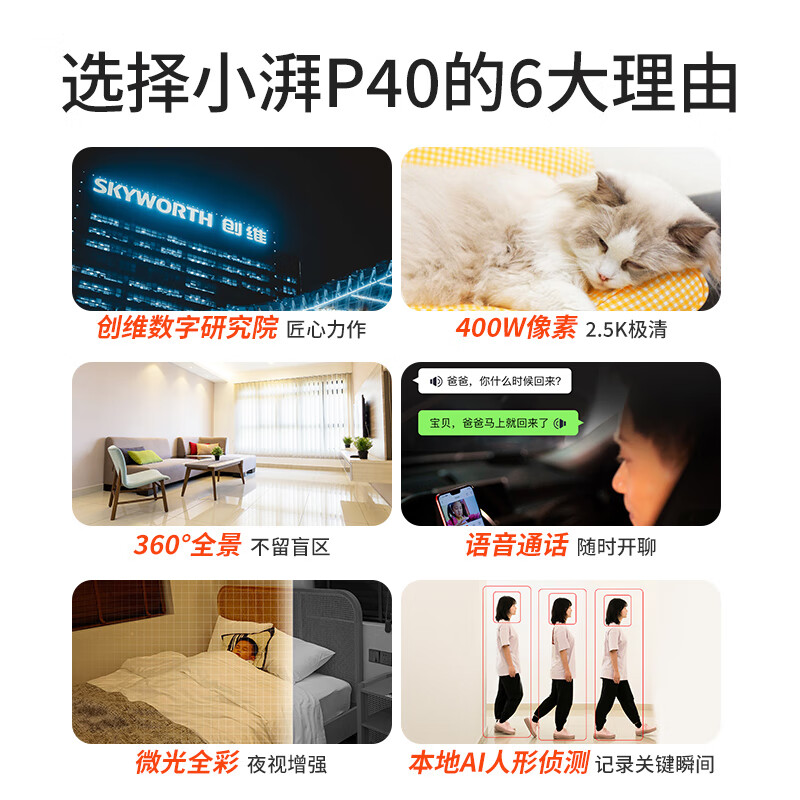 小湃400万摄像头家用监控器P40 家庭室内监控器360度无死角带夜视全景 手机远程监控看护器宝宝监护器价格:169.00元!