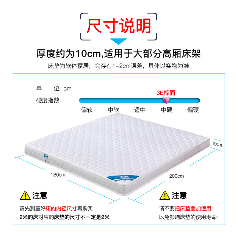 宜眠坊床垫 3E椰棕床垫 老人青少年偏硬棕垫A301-10 1.8*2米价格:599.00元!