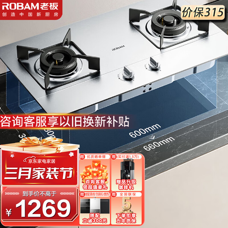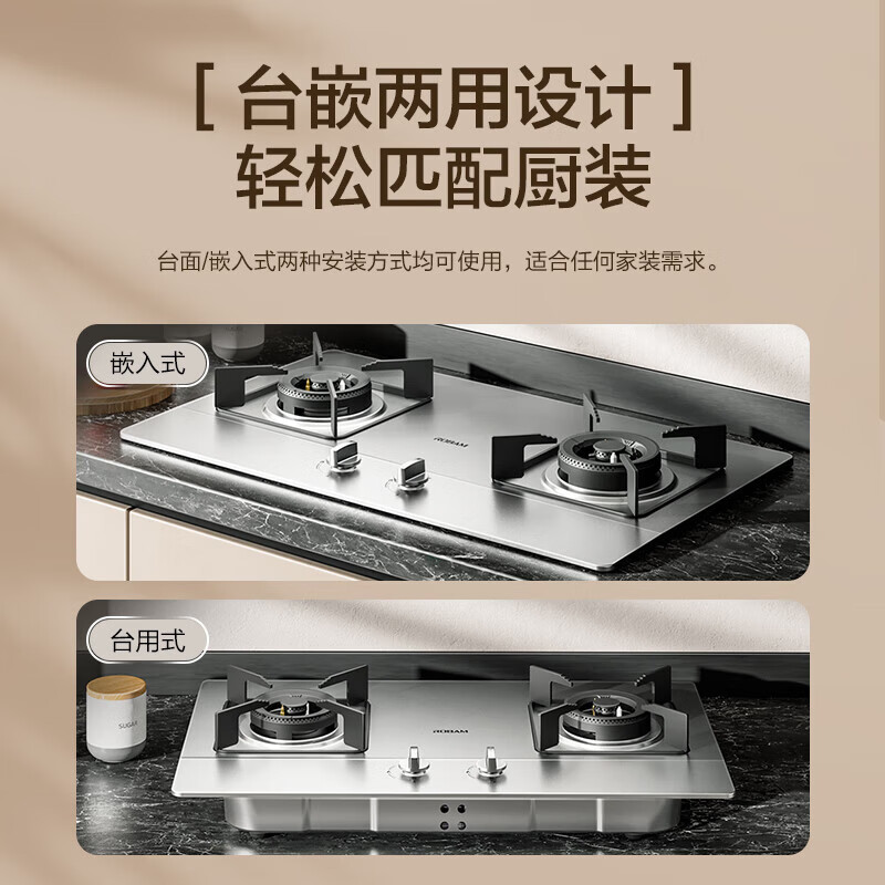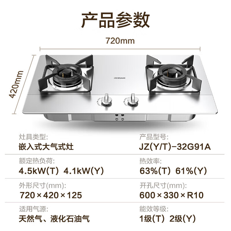 老板(Robam)32G91A燃气灶嵌入式灶具 家用双灶台嵌两用4.5kW大火力小尺寸可调节耐用不锈钢天然气价格:1269.00元!
