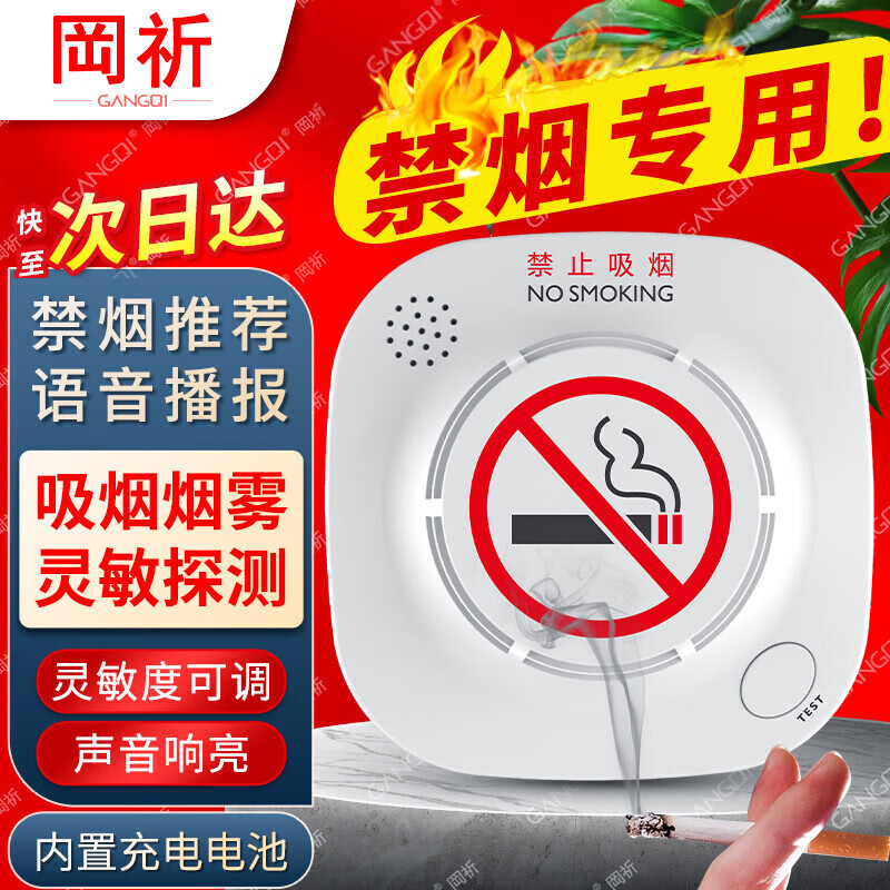 岡祈(Gangqi)禁烟专用 吸烟烟雾报警器 厕所卫生间禁止吸烟 消防抽烟检测仪探测感应器烟感报警器家用价格:399.00元!