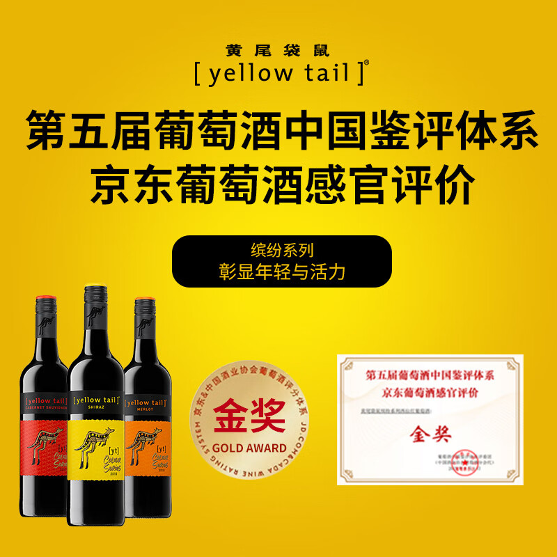 黄尾袋鼠(Yellow Tail)缤纷系列红酒 西拉红葡萄酒智利版 原瓶进口 750ml价格:55.00元!