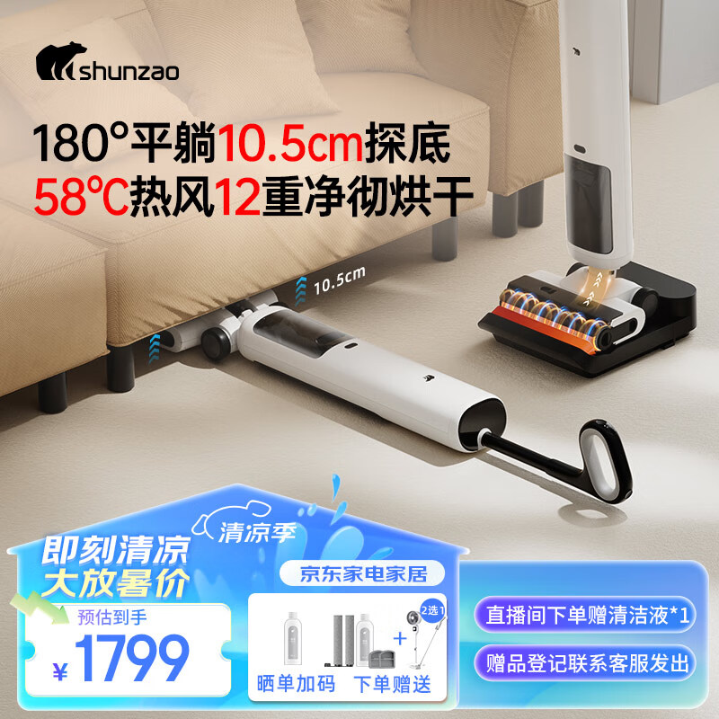 顺造洗地机180度平躺Z30 家用洗拖一体自动清洗手持吸尘洗地机 热风烘干无线智能价格:1999.00元!