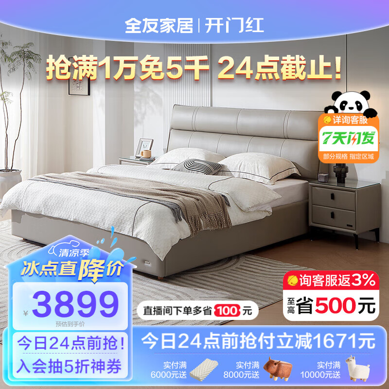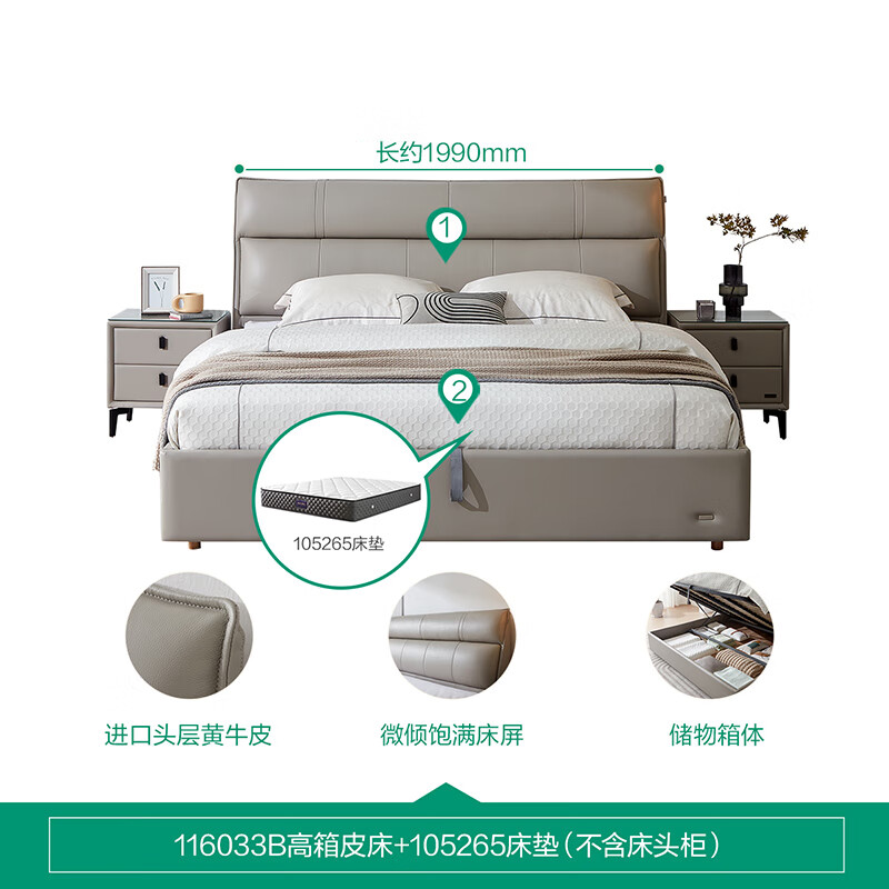 全友家居 卧室现代简约床真皮床家具高箱储物双人大床1.8米x2米116033价格:5570.00元!