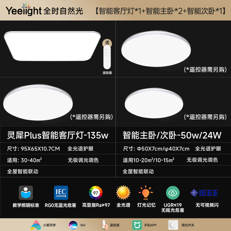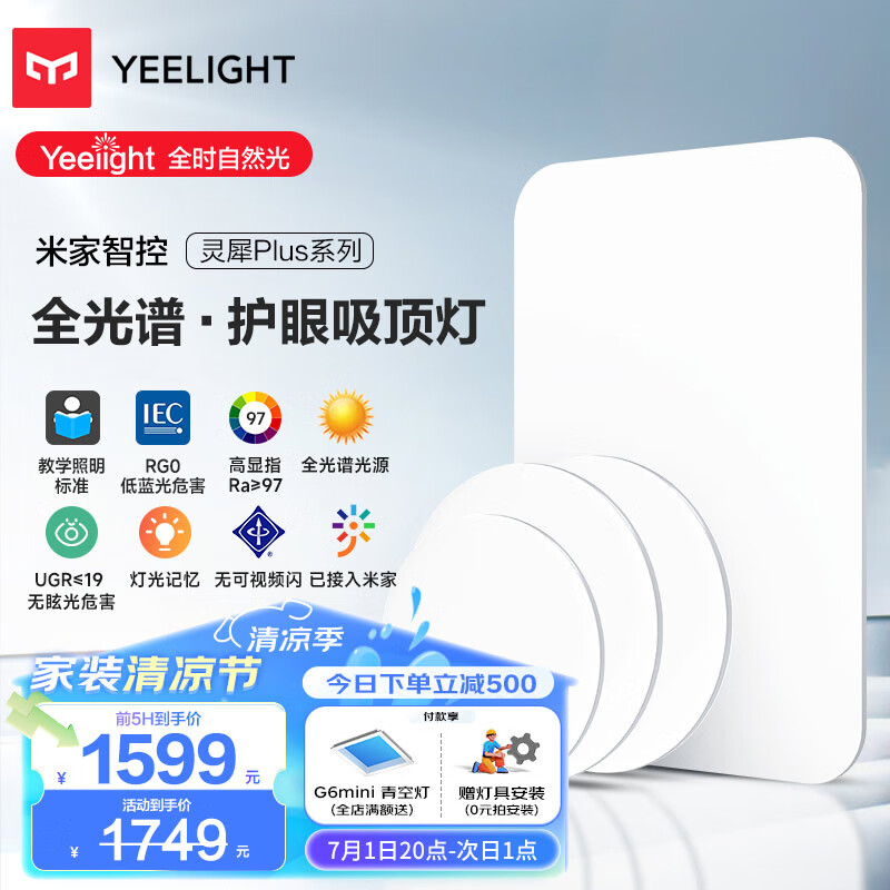 Yeelight易来灵犀Plus智能led全光谱低蓝光吸顶灯客厅卧室餐厅超薄灯具价格:2249.00元!