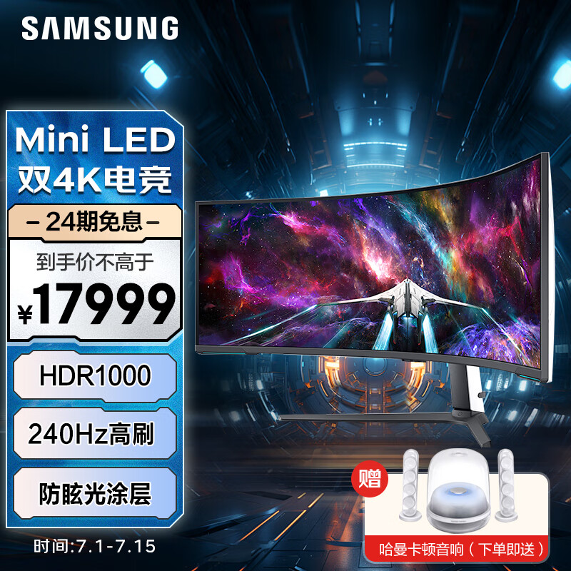 三星(SAMSUNG) 57英寸 MiniLED 240Hz 双4K HDR1000 1ms(GTG) G95NC 玄龙骑士 电竞 显示器 LS57CG954NCXXF价格:20999.00元!