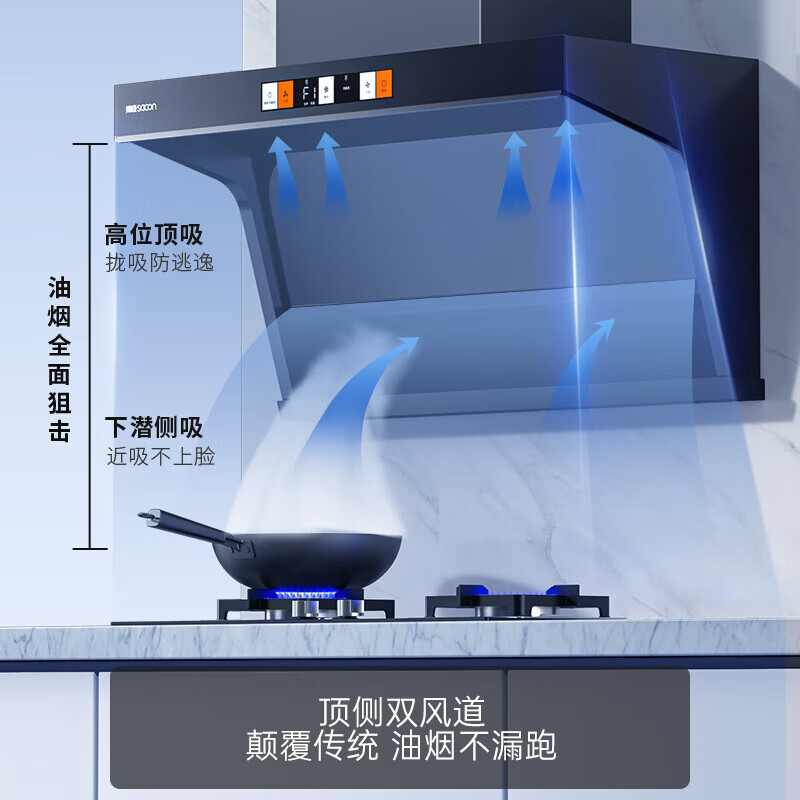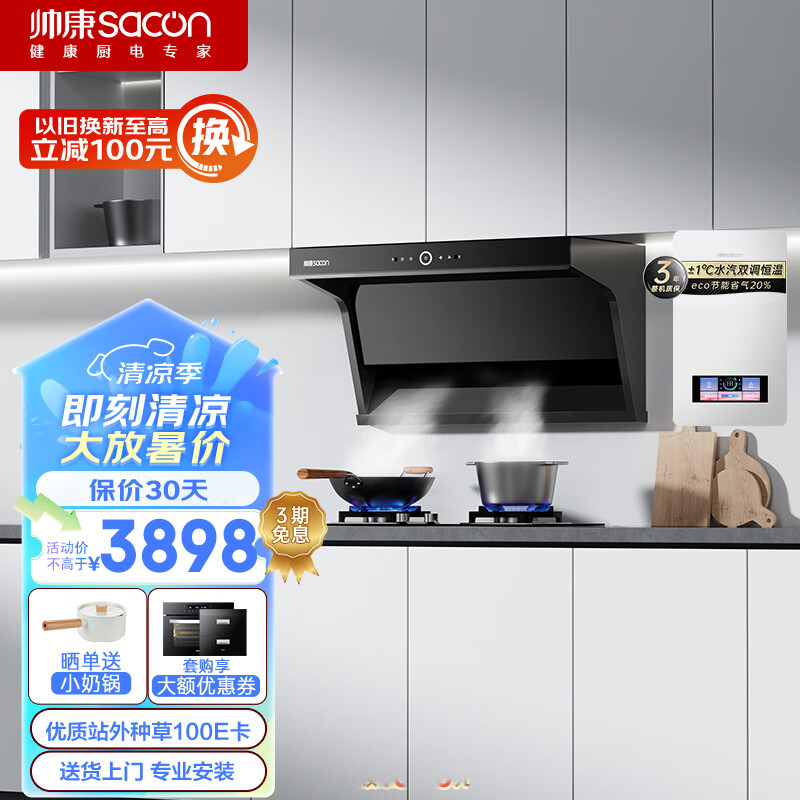 帅康(Sacon)烟灶热三件套 23大吸力顶侧双吸油烟机搭配5kW大火力灶具燃气热水器套装Y8272+61B天然气+16BCLE1价格:3898.00元!