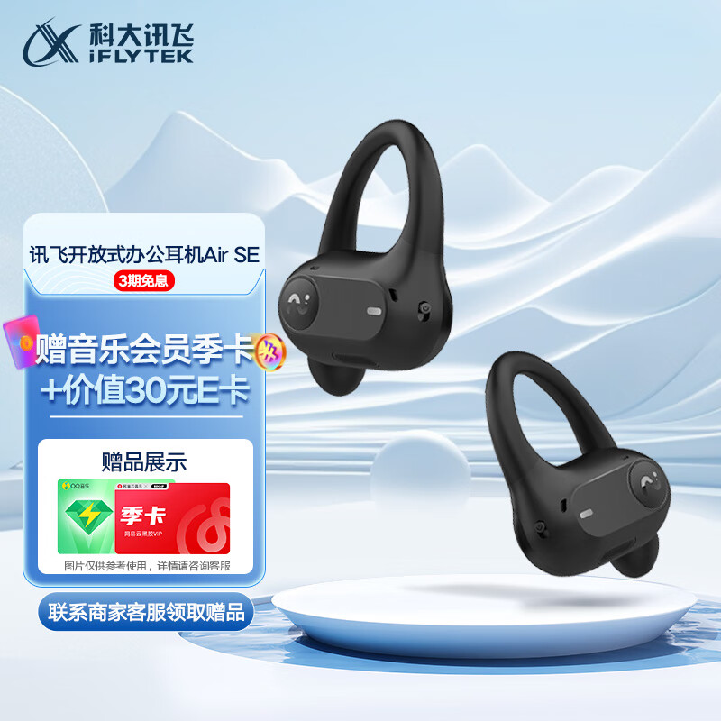 科大讯飞(iFLYTEK)开放式办公耳机 Air SE 黑 无线蓝牙耳机骨传导升级气传导运动录音耳机 同传听译 适用苹果华为价格:859.00元!