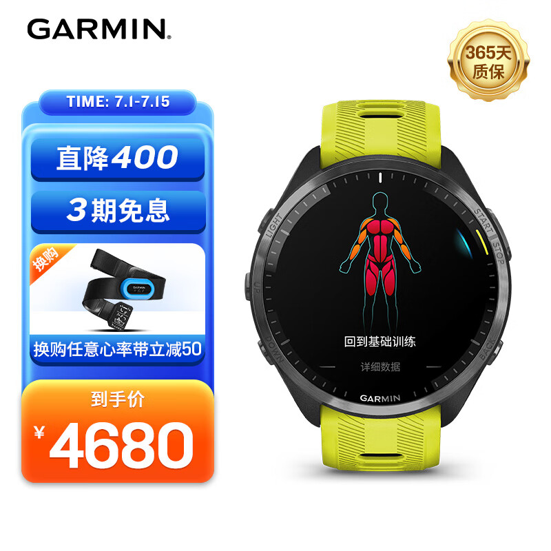 佳明(GARMIN)Forerunner965黄色 跑步游泳智能铁三多功能户外旗舰男女运动手表价格:4680.00元!