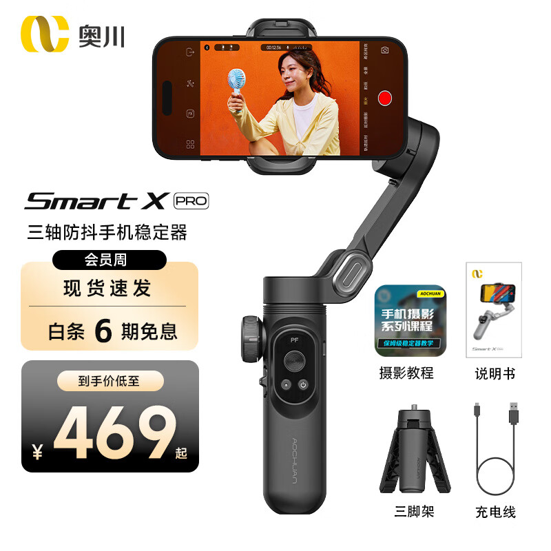 奥川手机稳定器三轴防抖手持云台vlog拍摄视频平衡自拍跟拍直播X Pro标配黑色款价格:469.00元!