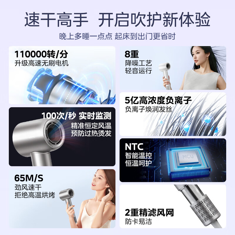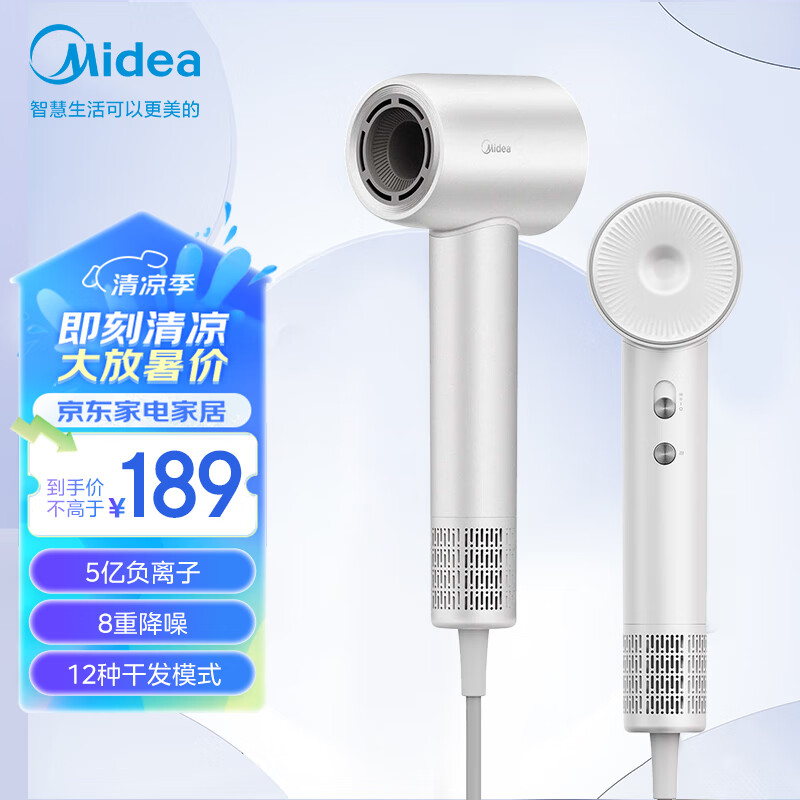 美的(Midea)高速吹风机家用吹风筒/大功率/负离子护发/大风力速干/节日生日礼物推荐FG208-流光白价格:199.00元!