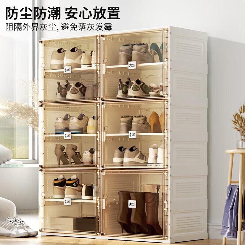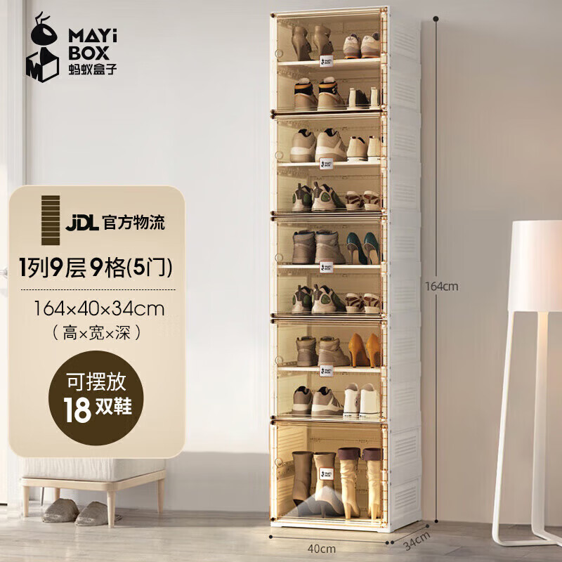 蚂蚁盒子(MAYIHEZI)免安装简易鞋柜门口家用玄关折叠透明茶色塑料超薄鞋柜 1列9层9格价格:419.00元!