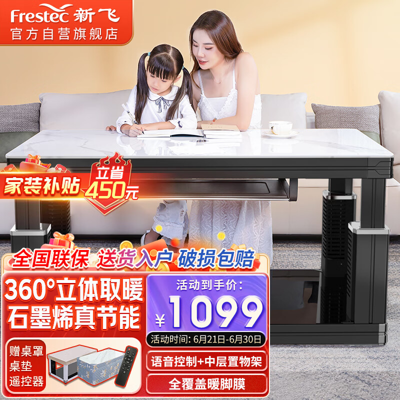 新飞电暖桌1.2米长方形烤火桌取暖茶几带语音控制升降电暖炉家用节能取暖器取暖桌XYT-2019N价格:1549.00元!