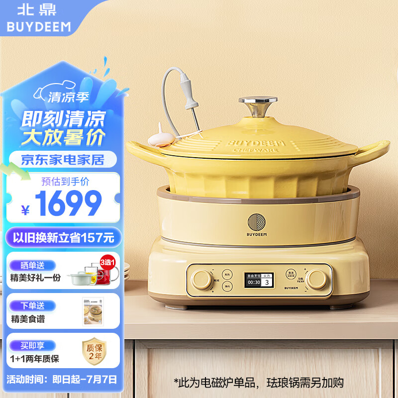 北鼎(Buydeem) 电磁炉电陶炉多功能一体家用大功率全自动节能小型灶恒温匀火烹饪一键预约【小鹅黄】价格:1699.00元!
