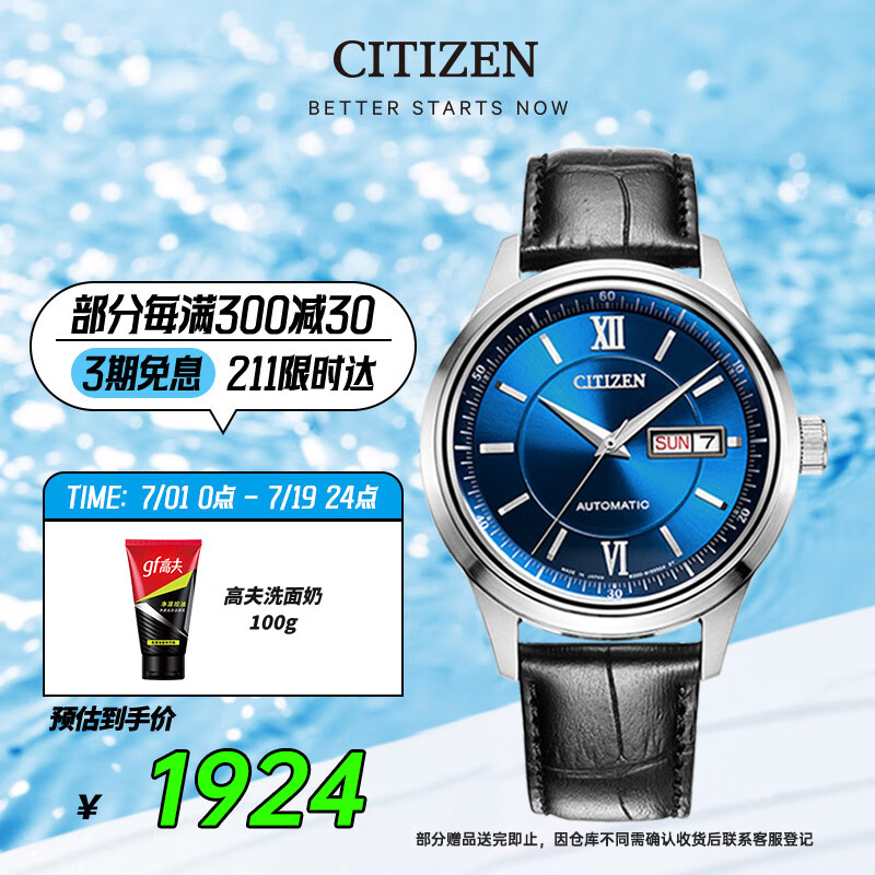 西铁城(CITIZEN)手表男日韩表自动机械日期显示皮带商务学生父亲节礼物NY4050-03L价格:2144.00元!