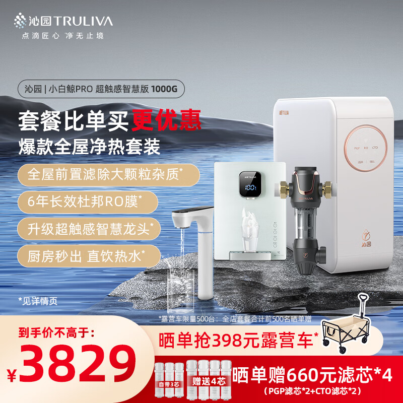 沁园(TRULIVA)触控屏 小白鲸PRO三件套1000G 净水器UR-S51098+前置过滤器P-A5510+加热管线机LNW580-5W价格:3929.00元!