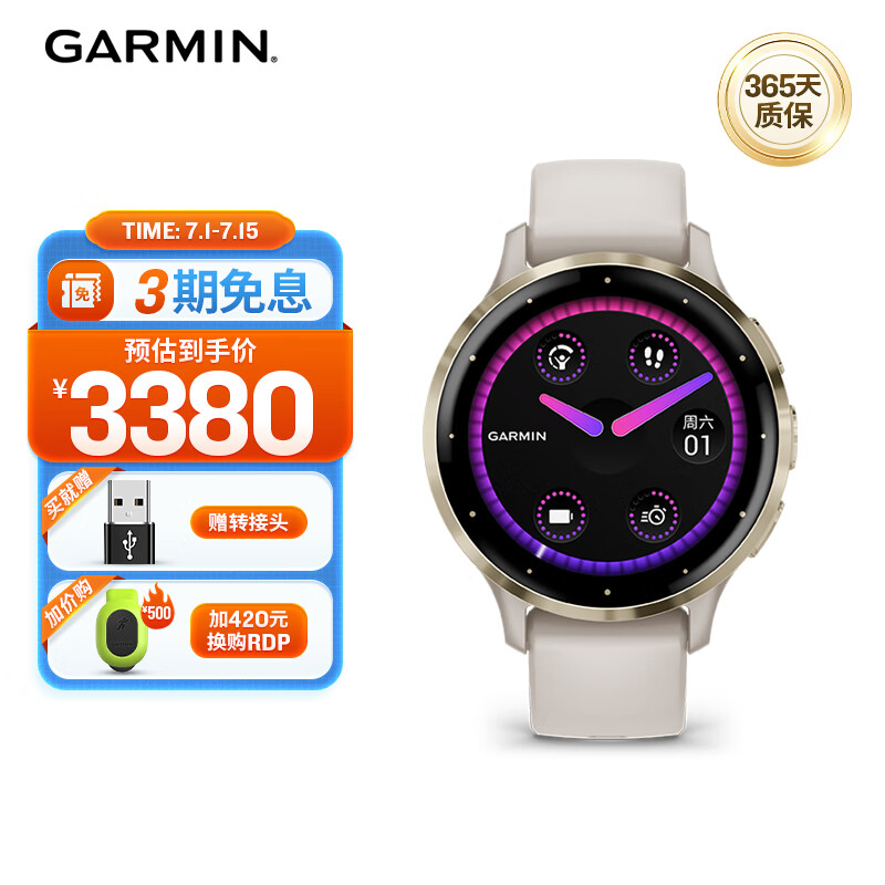 佳明(GARMIN)Venu3s星光白心率血氧时尚跑步骑行游泳运动手表生日礼物送女友价格:3380.00元!